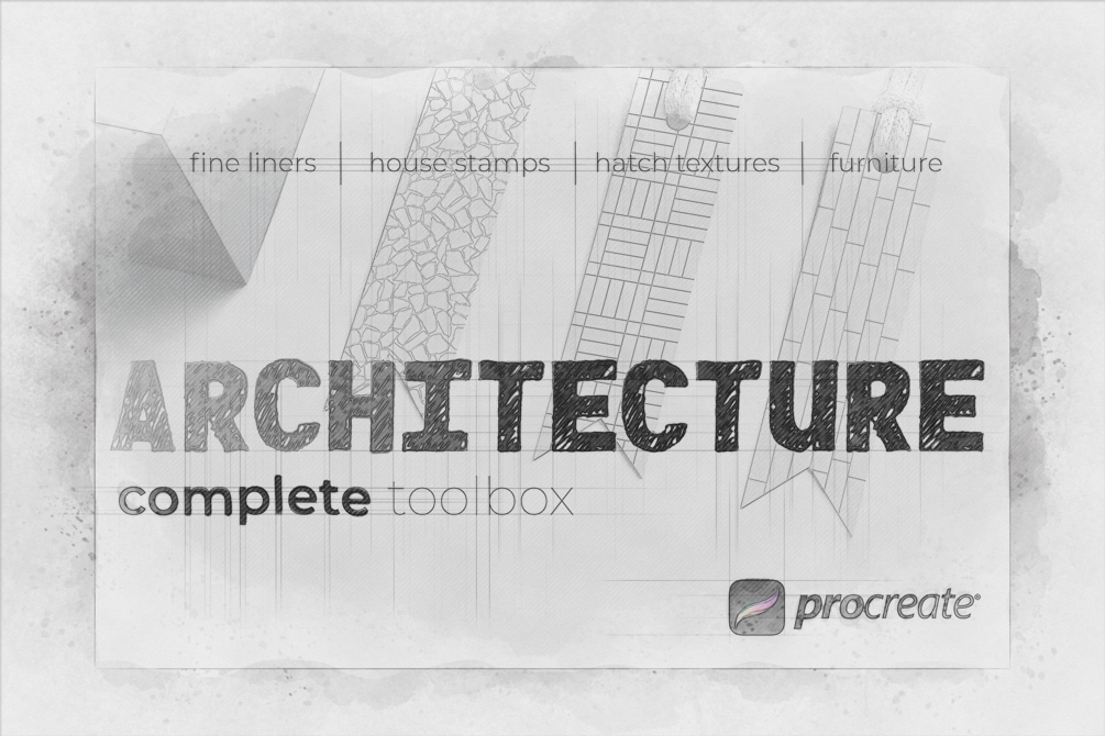11 sets of different collections of stamps, fineliners and texture brushes for Architecture and creation purposes!