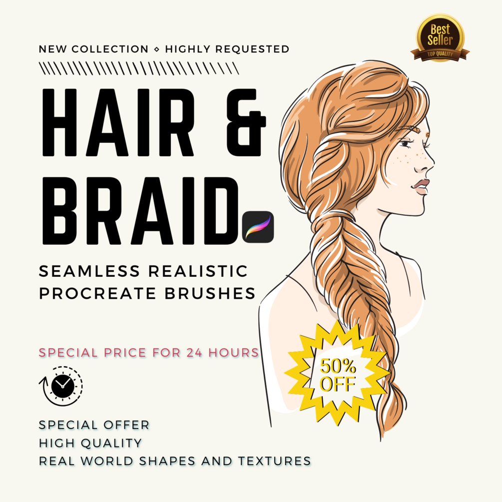 We are proud to present our newest Procreate brushset of hair and braid seamless brushes.
