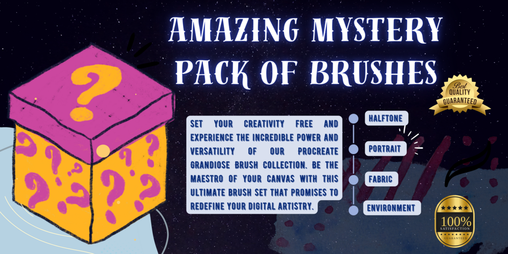 Get ready to unlock your artistic potential and experience the thrill of creativity with our ProCreate Mystery Brush Box Collection. Command the canvas with this fascinating collection of brushes that promises to redefine your digital artistry.