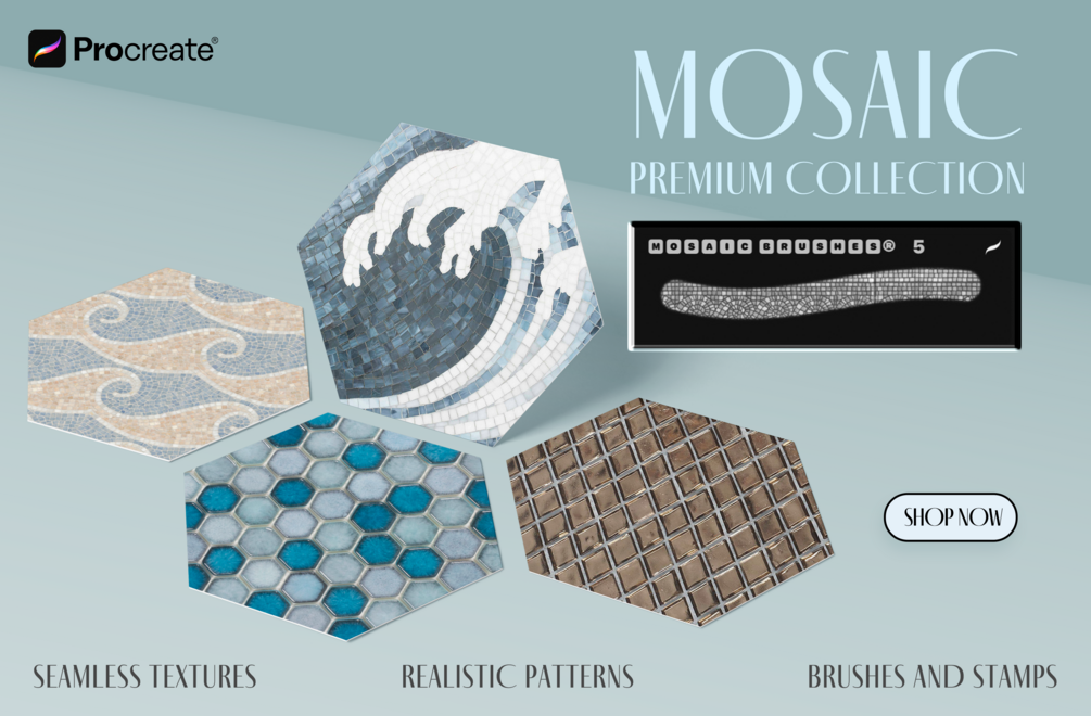 Embark on a journey through the rich history of mosaic art with our Mosaic Brush Kit for Procreate. This comprehensive collection features 10 distinct brush sets, each inspired by traditional mosaic materials, allowing you to infuse your digital creations with the timeless beauty of this ancient art form.